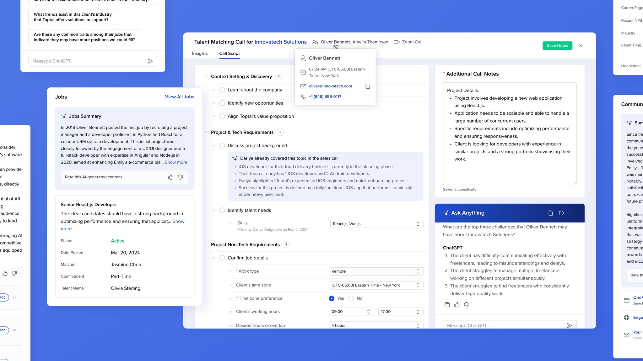 I led the design of an AI-powered Call Assistant tool at Toptal, aimed at improving the efficiency and consistency of client interactions while creating a seamless client-handling experience for the sales and talent operations teams.
